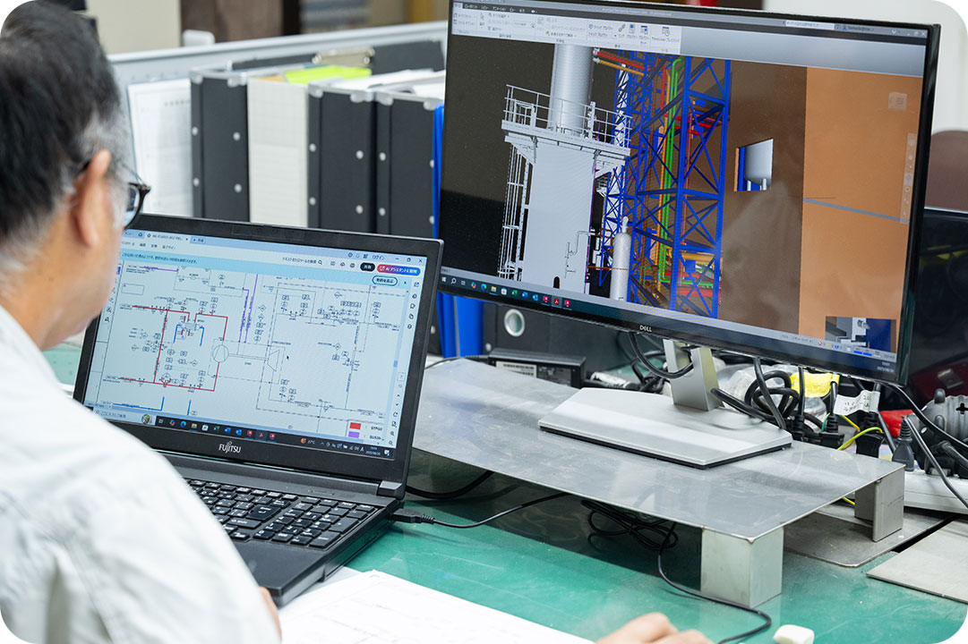 CADを使って施工図面を作成。安全性・効率性を考慮した計画を立てます。