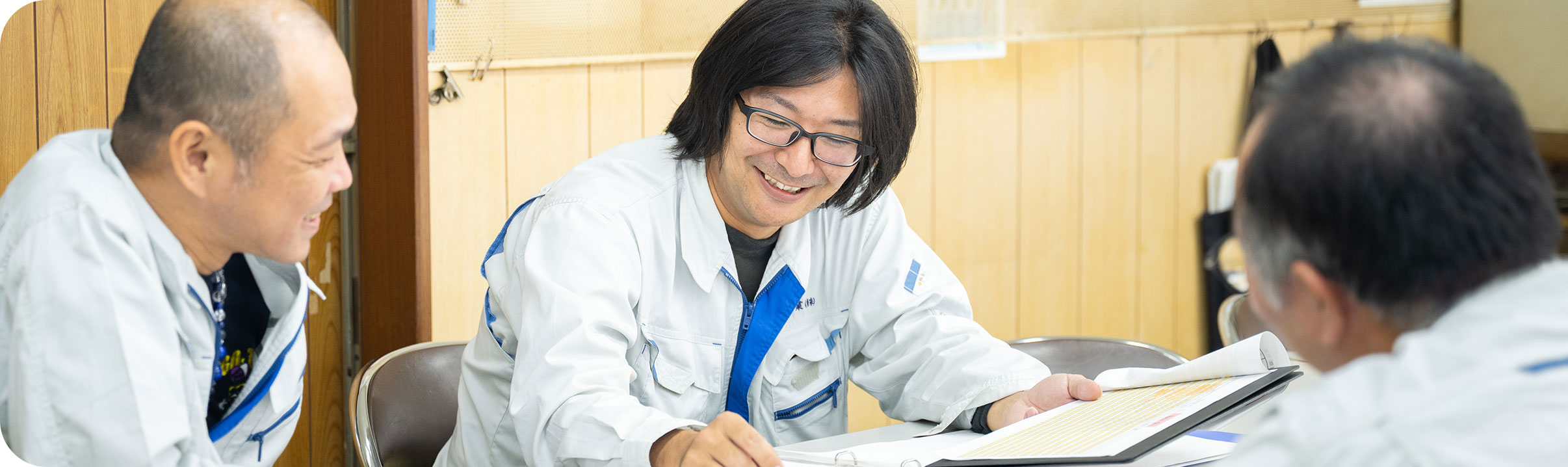 私自身、学生時代に少し触った程度でしたが、業務で使うCADや図面の描き方は上司がOJTでゼロから教えてくれました。決まったマニュアルがあるわけではなく、実践を通じて手取り足取り指導してもらえるので、未経験の方でも安心して学べる環境だと思います。